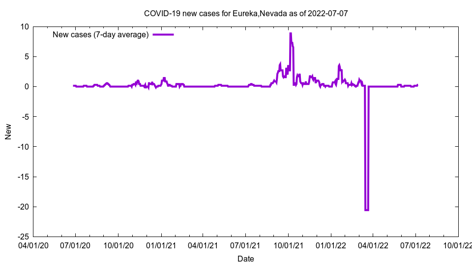 This image shows new cases for Eureka, Nevada as of 2022-07-07