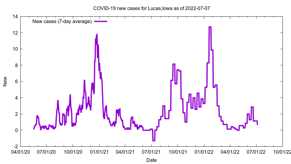 This image shows new cases for Lucas, Iowa as of 2022-07-07