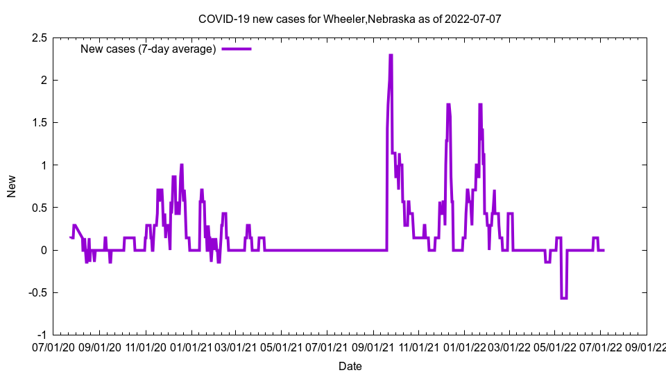 This image shows new cases for Wheeler, Nebraska as of 2022-07-07