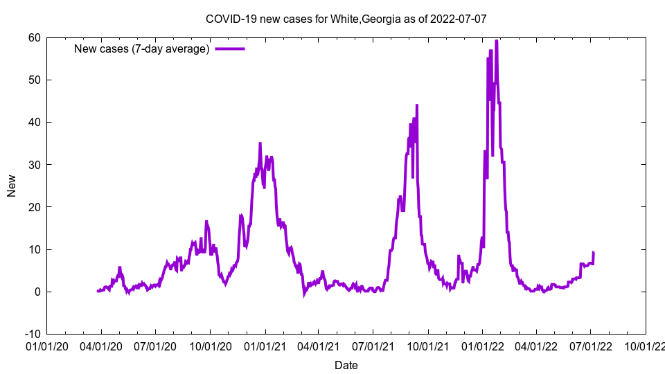 This image shows new cases for White, Georgia as of 2022-07-07